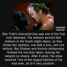 I have been a Star Trek fan since I was twelve. Little did I know the show would have such an impact on my life, and the lives of millions of others. For myself, in a time (which is still NOW) when so many forces seem to think me and mine don’t deserve a seat at the table, Gene Roddenberry not only invited us to dinner, he flew us into outer space! Here is the kiss that rocked the world!