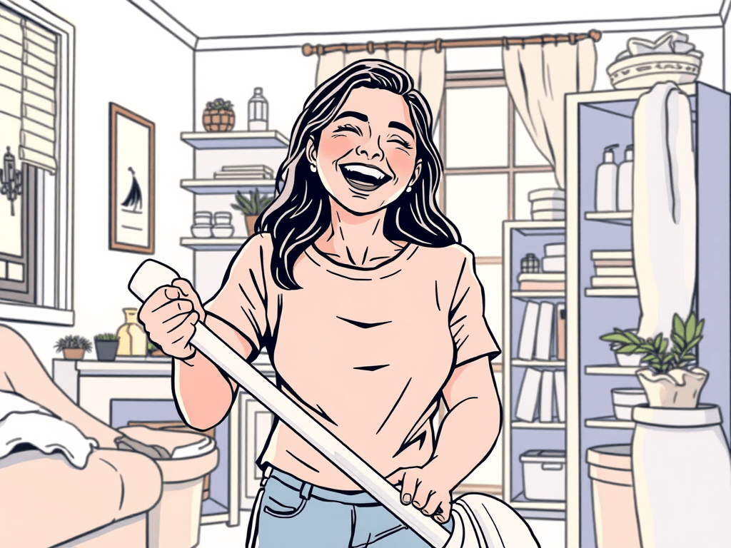 Please Note: I “requested” AI Line art of a person happily cleaning their home. This is what they gave me!